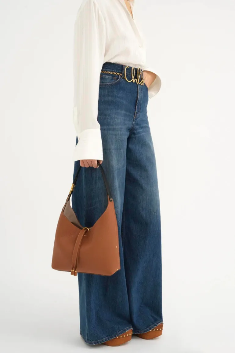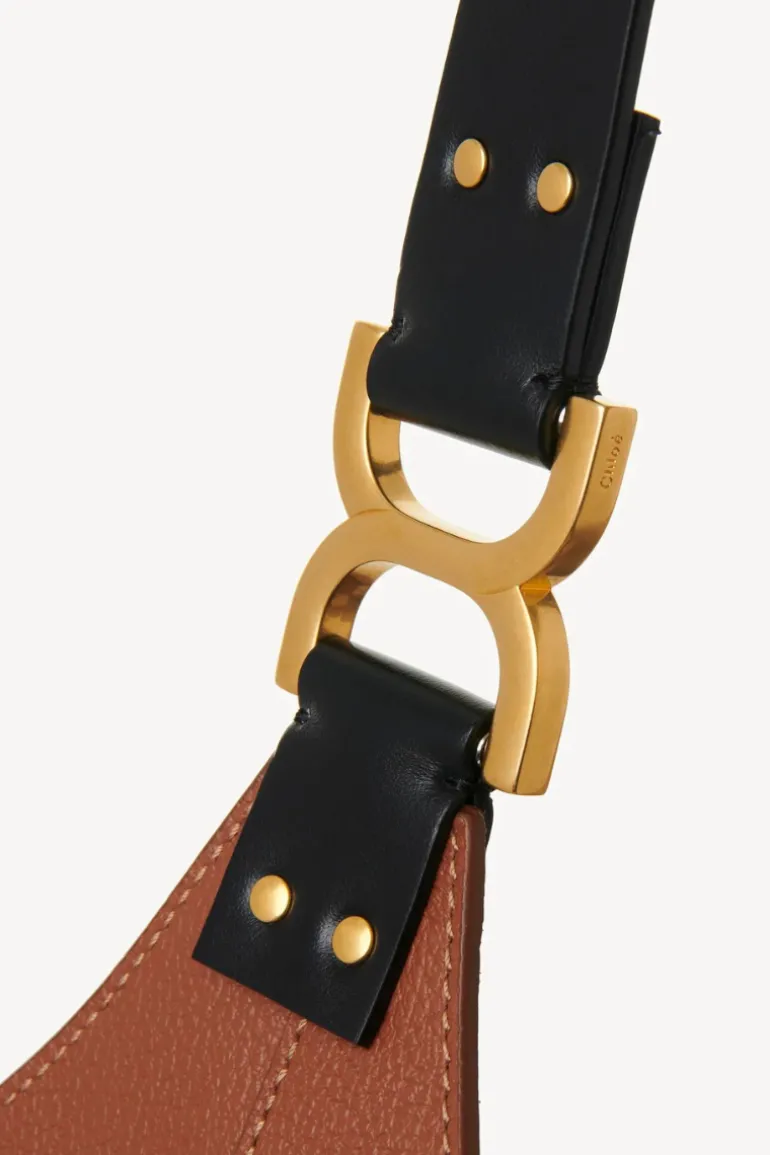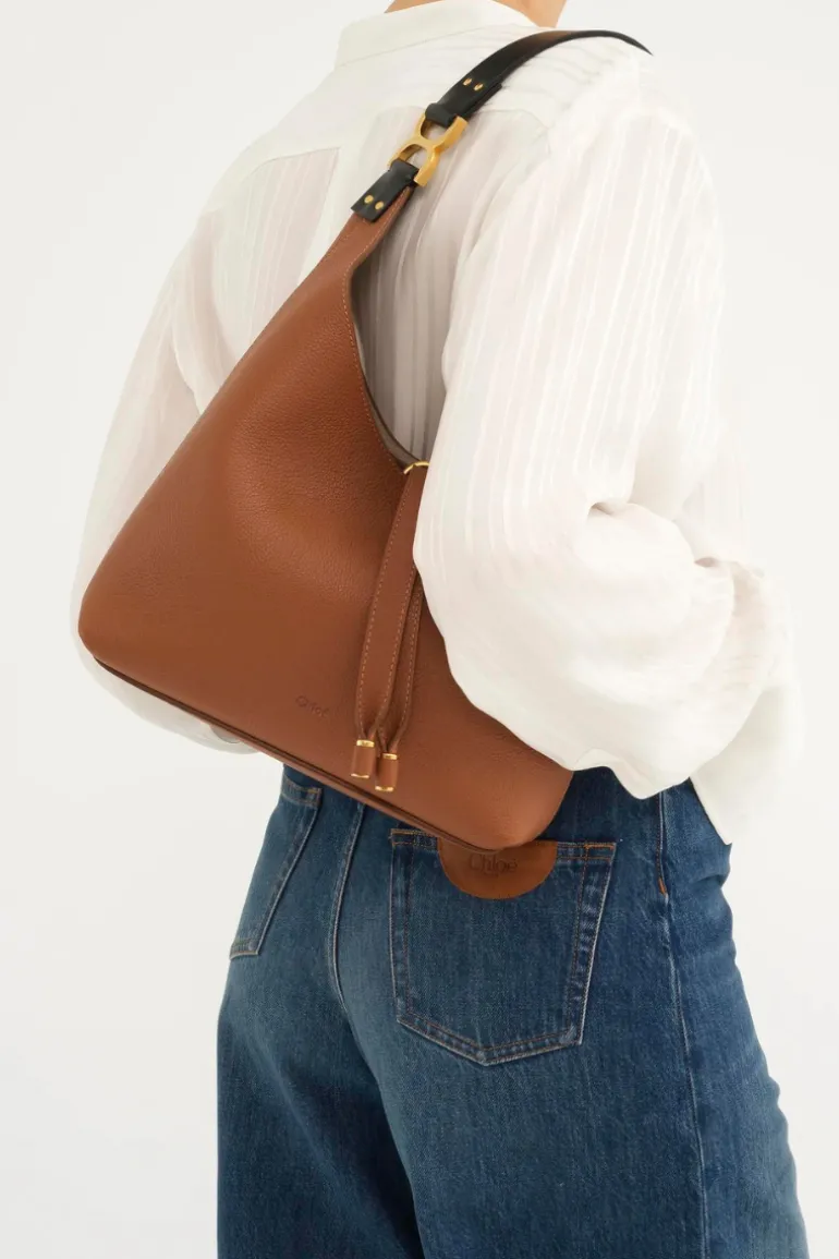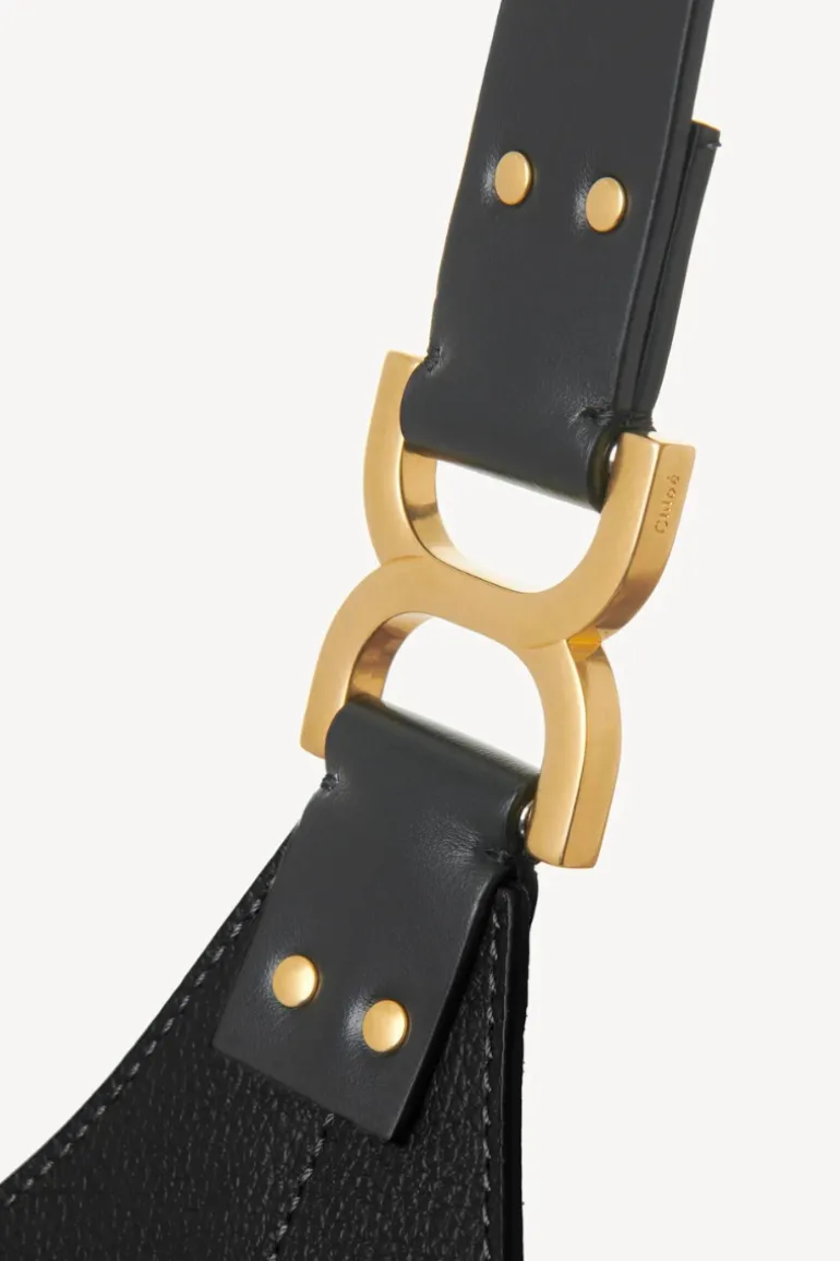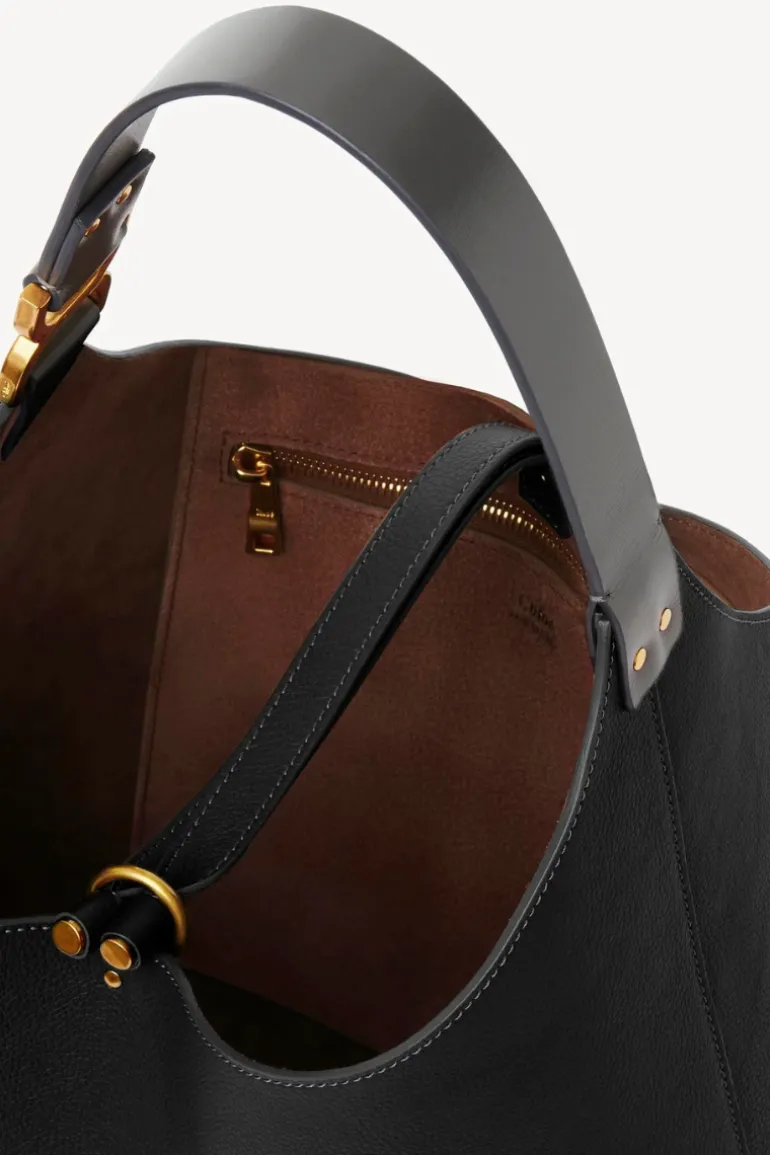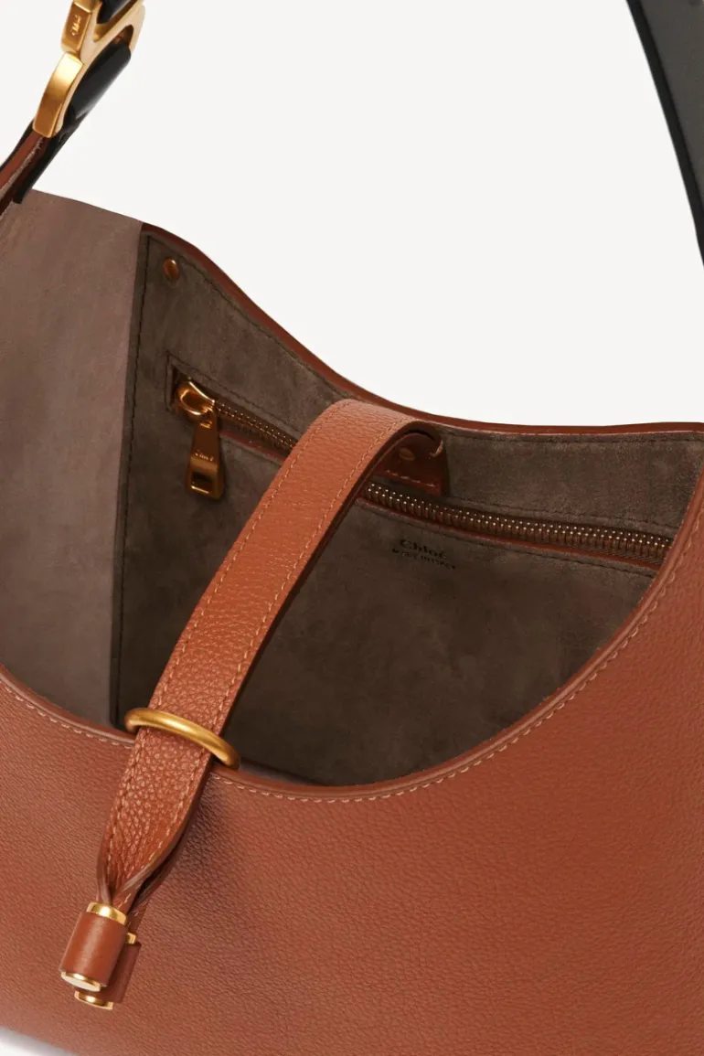 This small Marcie hobo bag has a slouchy, minimalist silhouette. Crafted from grained calfskin, it features a contrasting studded handle embellished with the line’s iconic gold-tone metallic piece. Signature leather tassels secure its suede calfskin interior.