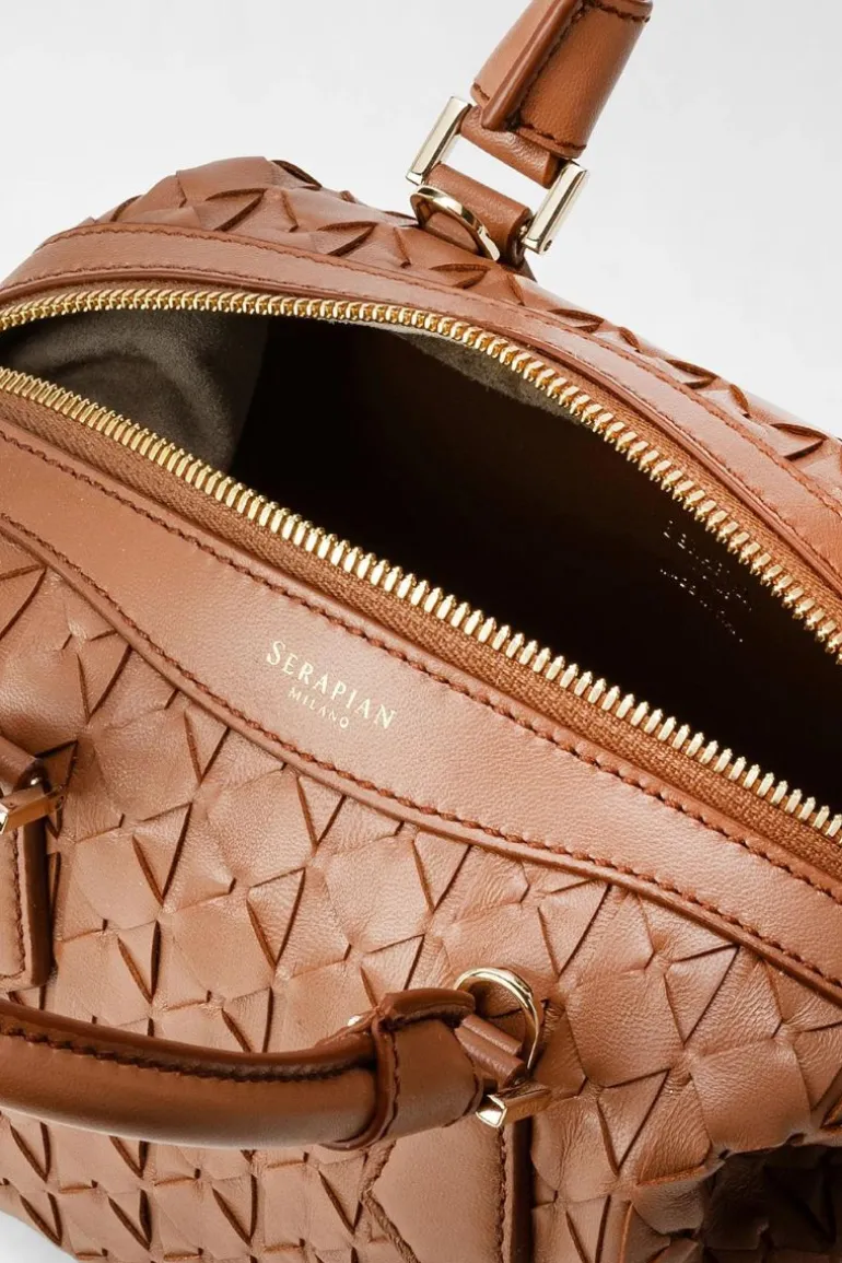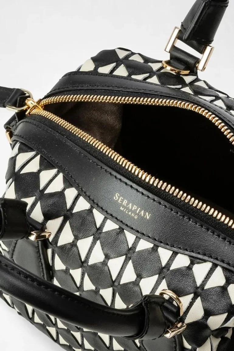Whether carried by hand or on the shoulder, its perfectly petite shape will complete any look. This bag is made from Mosaico leather, an exclusive weaving process dating back to 1947, a true emblem of Serapian craftsmanship and Made in Italy tradition.