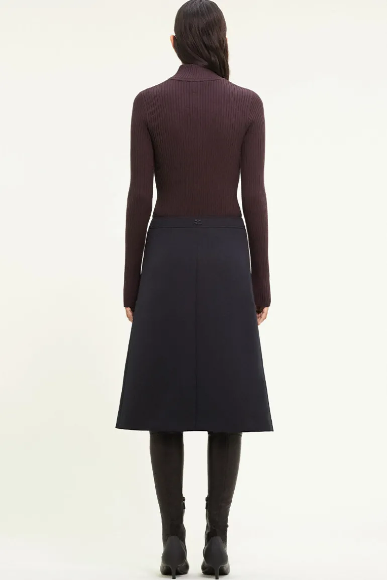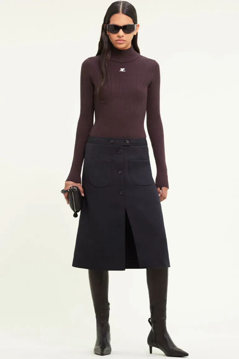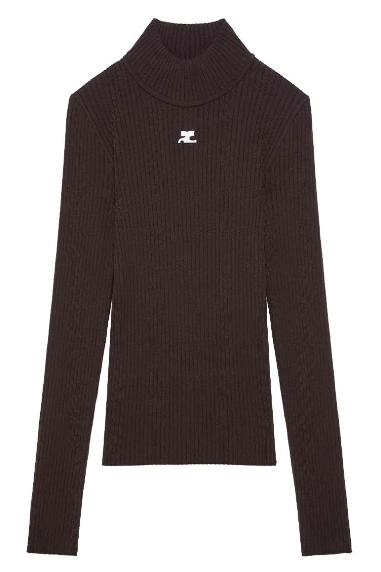 Reedition rib long sleeve sweater with mock neck collar and AC logo embroidered in front.