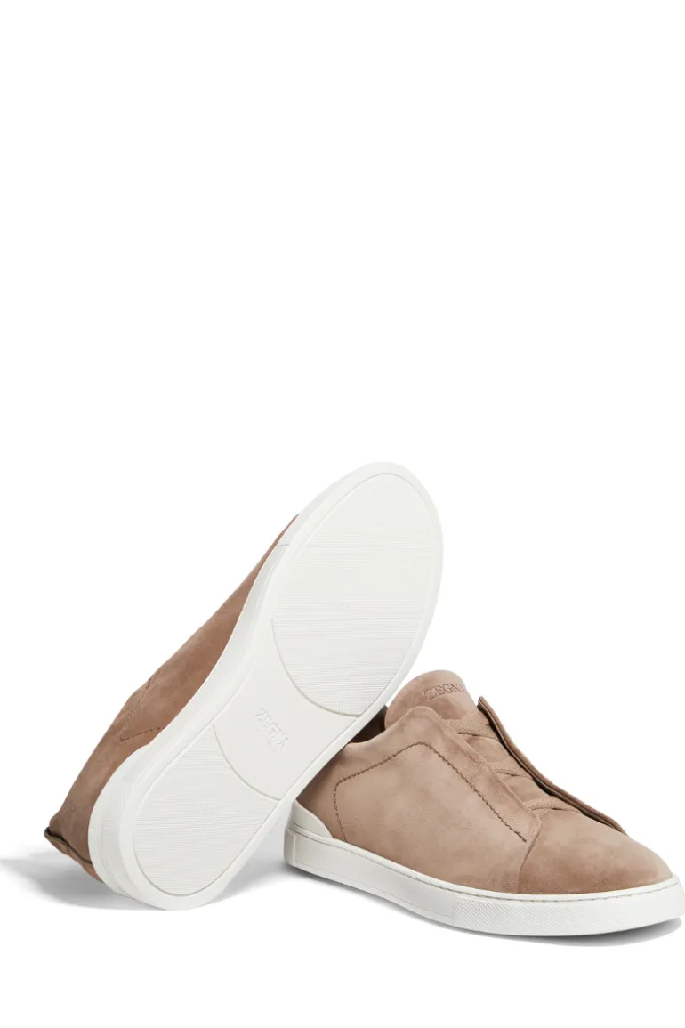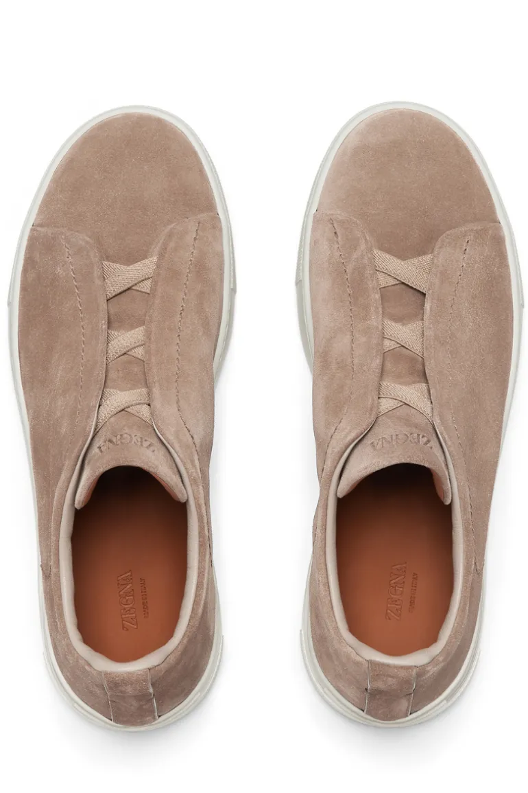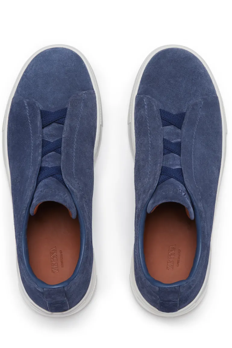 The suede Triple Stitch™ low top sneakers offer a luxurious take on casual footwear. The sneakers slip on easily thanks to the collection’s iconic, triple-crossed elastics, which evoke the hand-stitching on our tailored jackets. A white rubber sole adds a pop of contrast.